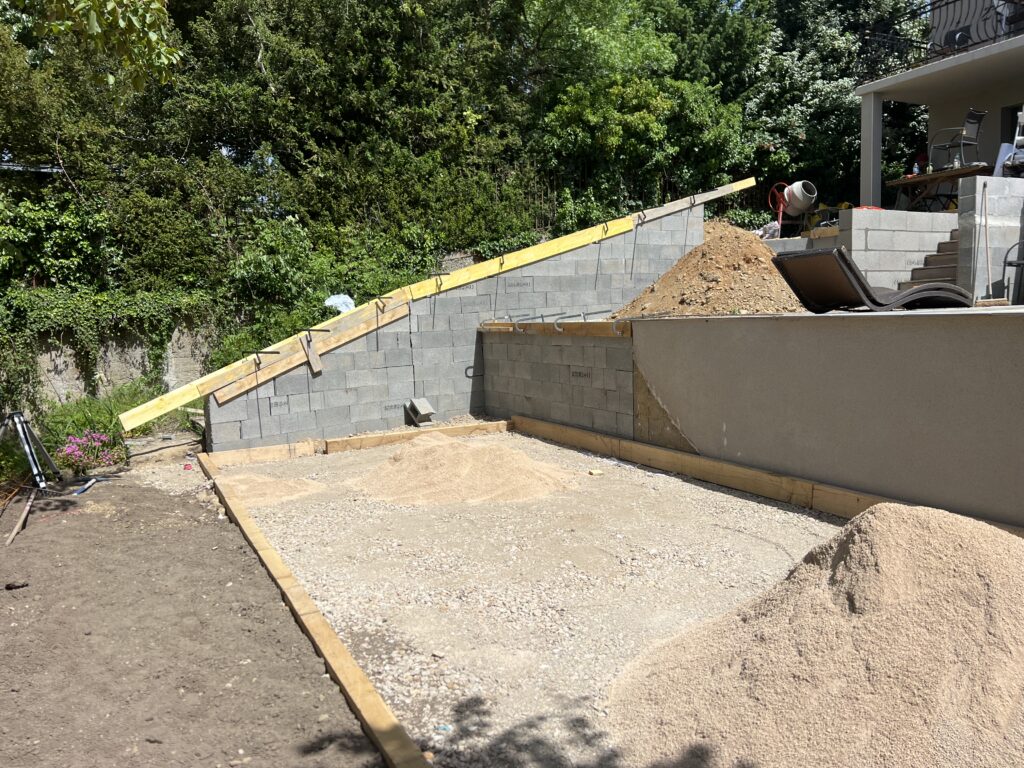 Les murs ont été réalisés selon les normes en vigueur, avec ferraillage complet, bétonnage, drainage arrière et gestion des eaux afin d’assurer leur longévité.